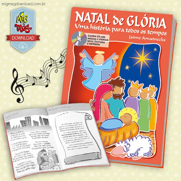 NATAL DE GLÓRIA – uma história para todos os tempos – é uma cantata bíblica de Natal, que pode ser apresentada por corais mais experientes, ou por crianças e coro infanto-juvenil (2 versões no produto).